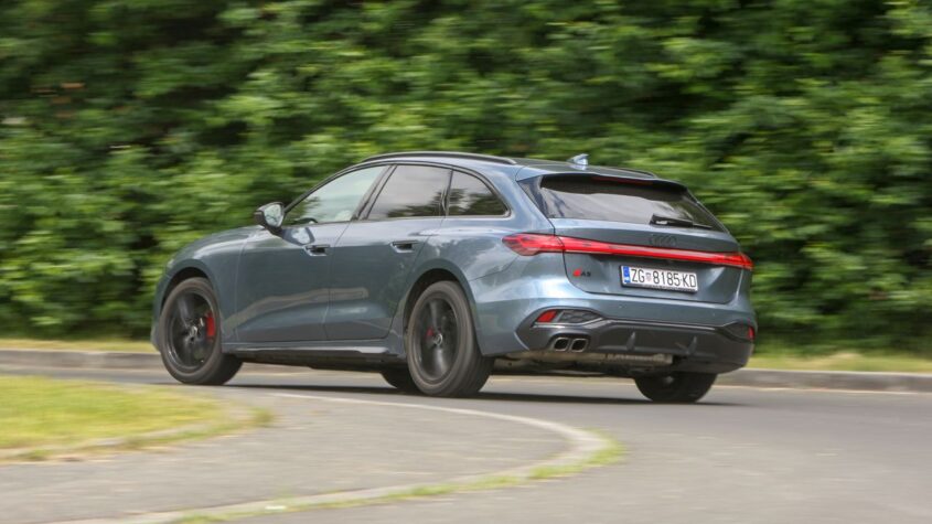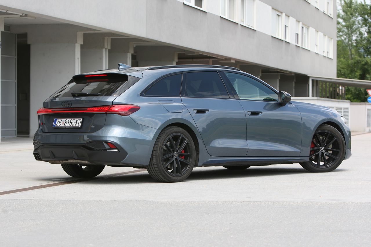 PPC-platformi, narasla u dužinu (+67 mm), širinu (+13 mm) i visinu (+11 mm) te oblikovana novom interpretacijom Audijeva dizajnerskog jezika. Testirani A5 Avant posebno dobro izgleda u plavoj boji Horizont, sa 19-inčnim lijevanim kotačima Audi Sport te crvenim kočnim kliještima paketa Sport, kao i Matrix LED-prednjim i OLED-stražnjim svjetlima. A5 izgleda, drugim riječima, onako kakav i jest – raskošan i izuzetno moderan.
