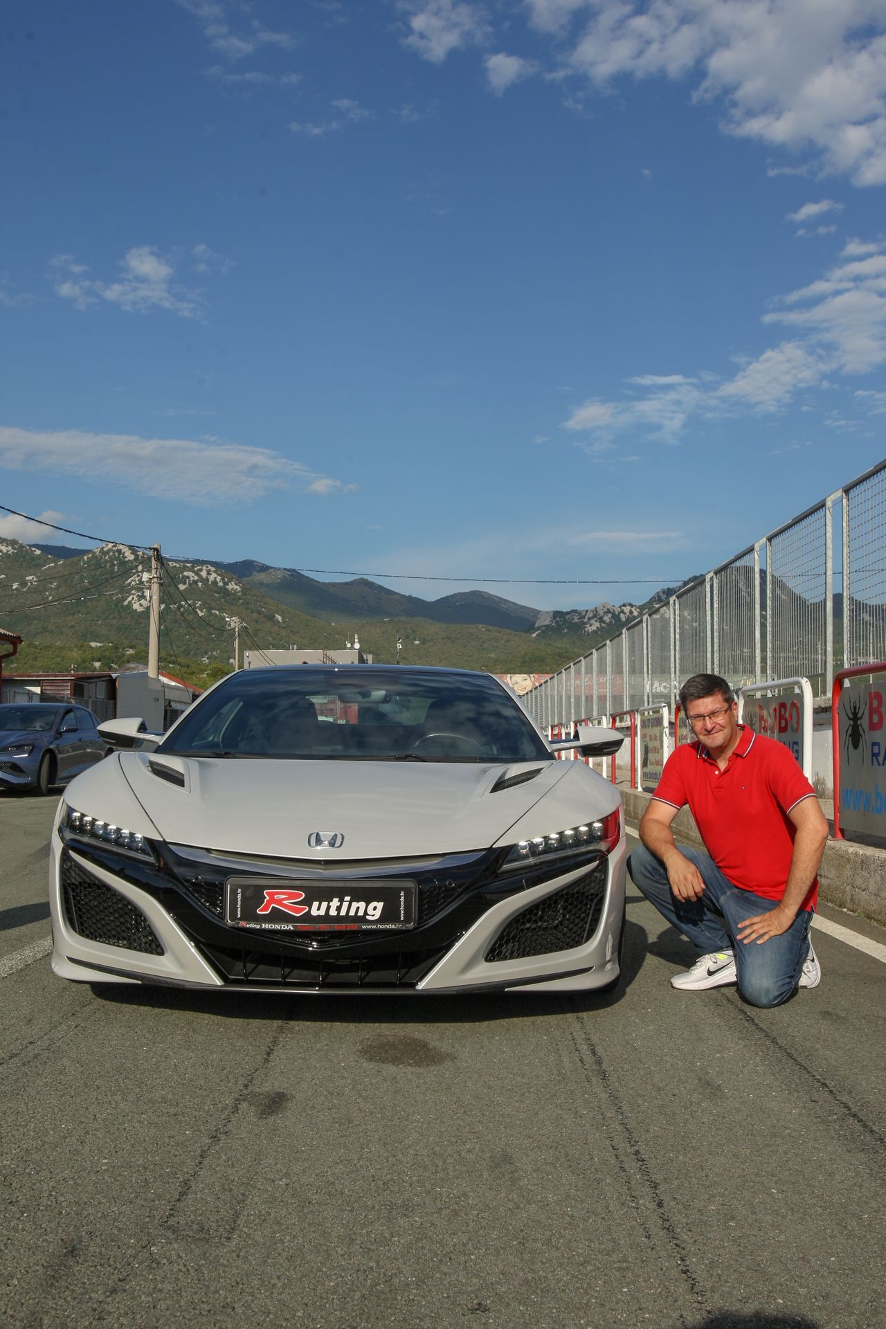 Zahvaljujući, između ostalog, aktivnom ovjesu, Hondin supersportaš na grobničkoj pisti leži kao zakovan, a malu nesigurnost nakon nekoliko odvezenih krugova unose Michelinove gume Pilot Sport Cup 2 koje je načeo ‘zub vremena’. Naime, ovaj NSX iz privatne kolekcije Dražena Srdoča, uvoznika Honde, tijekom deset godina na instrumentima broji nešto manje od 3000 km. Provoza se samo u posebnim prilikama, baš kakva je ova.