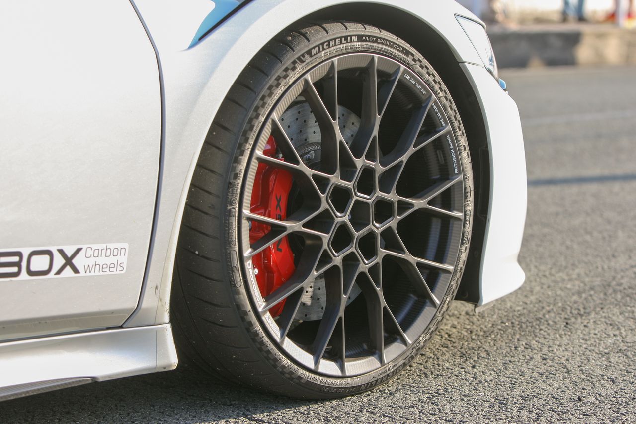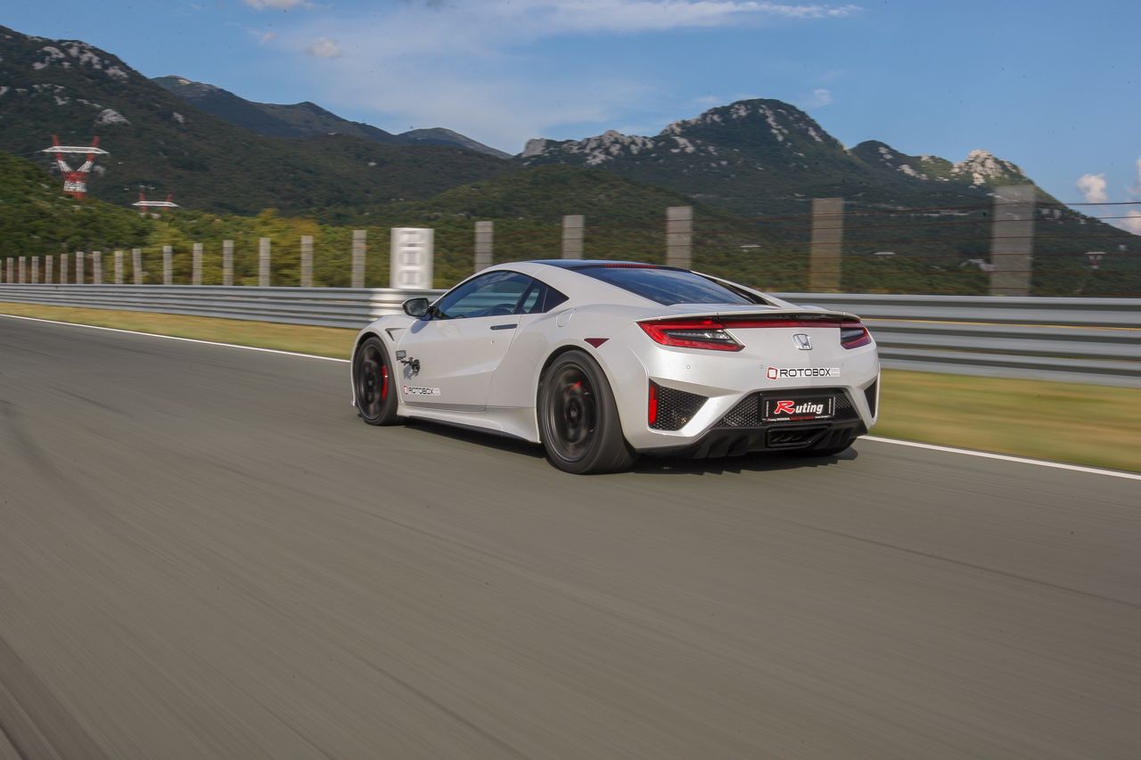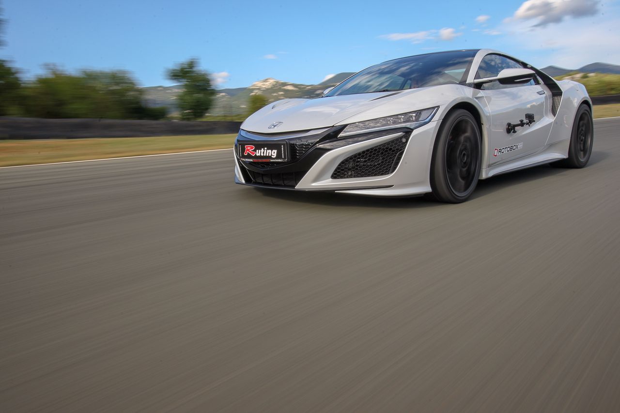 Honda NSX je za potrebe vožnje na Grobniku dobila novu ‘obuću’. Slovenska tvrtka Rotobox, dobro poznata među vozačima sportskih motocikala, ‘počastila’ ju je atraktivnim karbonskim kotačima Aimer. Riječ je o njihovim prvim homologiranim karbonskim kotačima (standard: SAE J3204) za sportske automobile. Dostupni su isključivo u veličini od 20 inča (serijski su na NSX-u sprijeda 19″,a straga 20″), dok u širinu mjere 9 ili 11 inča. Ovisno o potonjem, masa im je 7,7 ili 8,1 kg. Zasad postoji samo verzija s pet rupa, no u Rotoboxu zasigurno planiraju i druge verzije. Cijena kotača ovisi o državi, tj. poreznom opterećenju, a nekakva okvirna cijena ovih na NSX-u iznosi – 24 tisuće eura.
