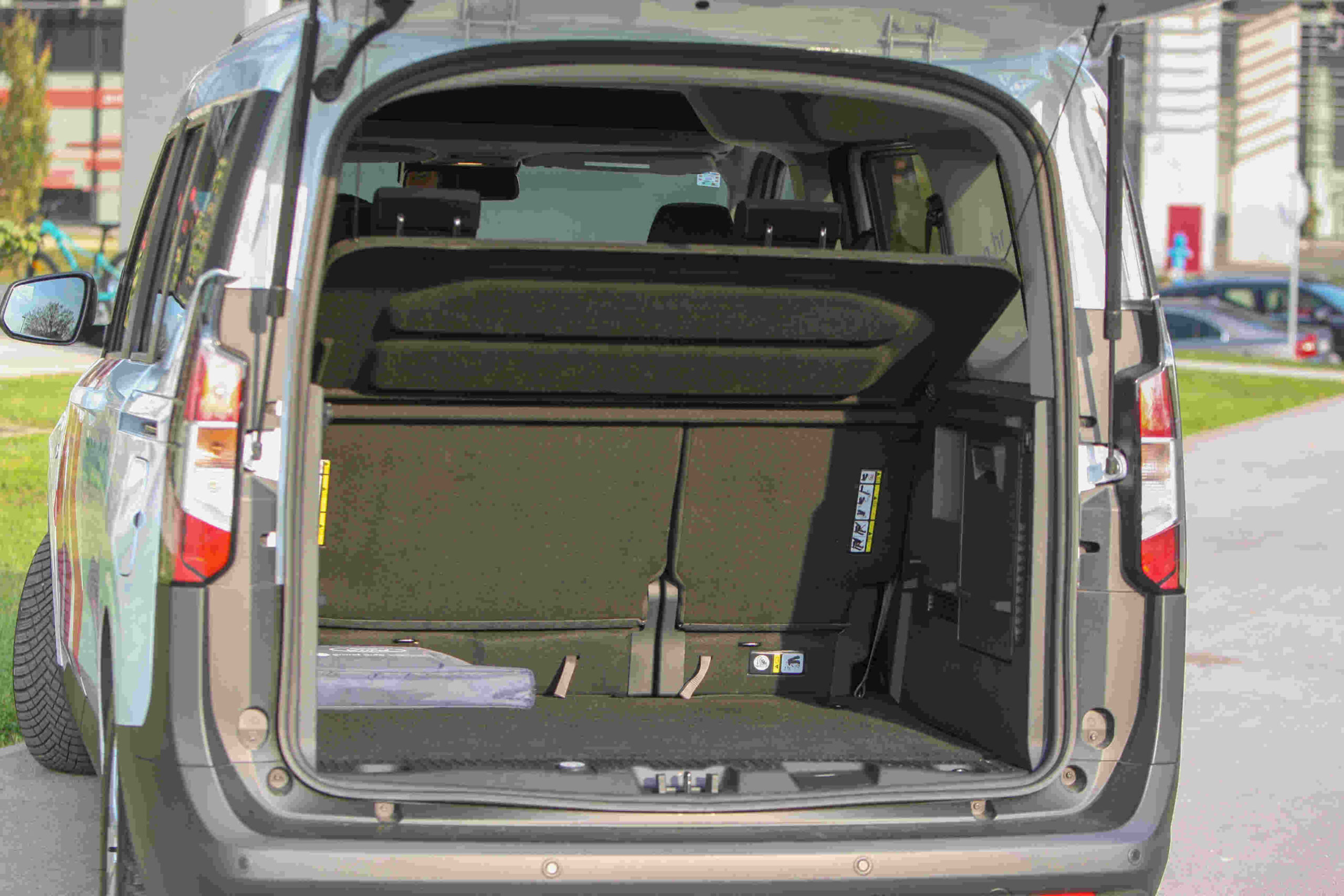 Naravno, ono gdje novi Courier još i više impresionira jest novo stečena prostranost. Ona je dobrim dijelom iskorištena i za brojne police i odlagališta za sve one sitnice koje su neophodne u svakodnevnom poslovanju, a koje vozač uvijek želi da su mu pri ruci. Također, tu je i praktična polica ispod vjetrobranskog stakla. Što se prostora straga tiče, tu će, istina malo uspravnije, ugodno sjediti i viši od 180 cm dok će im ulaske i izlaske u vozilo olakšati bočna klizna vrata širine (u donjem užem dijelu) 66 cm. Pravilne i oštre linije karoserije jamstvo su voluminoznog prtljažnika od 570 litara koji u dubinu nudi 93 cm, u širinu 117 cm te 110 cm u visinu (ma okviru). Dodajmo tome ugodno niski utovarni prag od 58 cm, četiri praktične ušice za osiguravanje tereta, ali i činjenicu da se peta vrata odižu na gotovo 190 cm kako ne bi smetala prilikom utovara. Još jedna praktična stvar je mogućnost postavljanja police prtljažnika u dva nivoa odnosno osim standardne u visini naslona za glavu, tu je i opcija postavljanja na polovici visine prtljažnika. Stražnja klupa nije klizna niti se da vaditi, ali je djeljiva 1/3:2/3 te se nasloni ili cijelo sjedalo može preklopiti prema naprijed. Kod potonjeg moguće je utovariti na podu predmete dužine do 165 cm ili 30 cm duže samo s preklopljenim naslonima, ali i posljedičnom grbom. U svakom slučaju vozač na raspolaganju ima čak 2162 l obujma što će s osmijehom pozdraviti svi oni koji povremeno moraju prevoziti kabaste predmete.