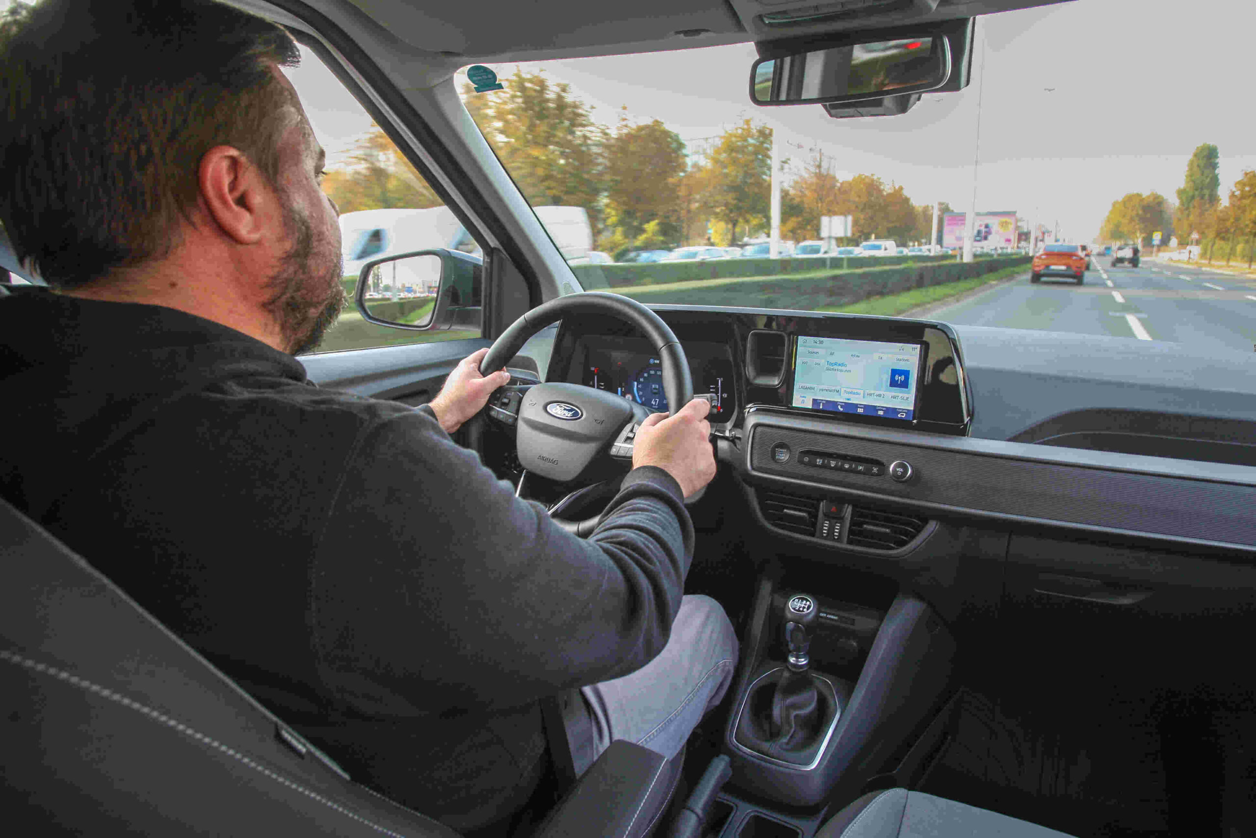 Nova, druga po redu generacija Couriera znatno je veća od prethodnika prvenstveno na račun nove platforme koja sad korijene vuče od osobnog modela Puma za razliku od prethodnika koji se bazirao na znatno manjem, u međuvremenu ugašenom, gradskom modelu Fiesta. Posljedično, putnici na prednjim i stražnjim sjedalima će uživati u mnoštvu prostora, pogotovo za glavu, a jednako će raskošno biti i u prtljažniku. Zanimljivo, iako se u ovakvoj vrsti visokih vozila sjedi prilično uspravno, u Fordu to nije posve slučaj. Naime, iako vozač i dalje sjedi nešto povišenije i ima dobru preglednost, sama početna točka sjedenja nešto je niža nego uobičajenije pa je i samim time osjećaj vožnje kao u nekom SUV-u, a ne dostavnom vozilu. Ford je uvijek dosta toga polagao na dinamiku vožnje pa uz dinamički vrlo sposoban ovjes nekako prirodno ide i ovakva dobra vozačka pozicija.