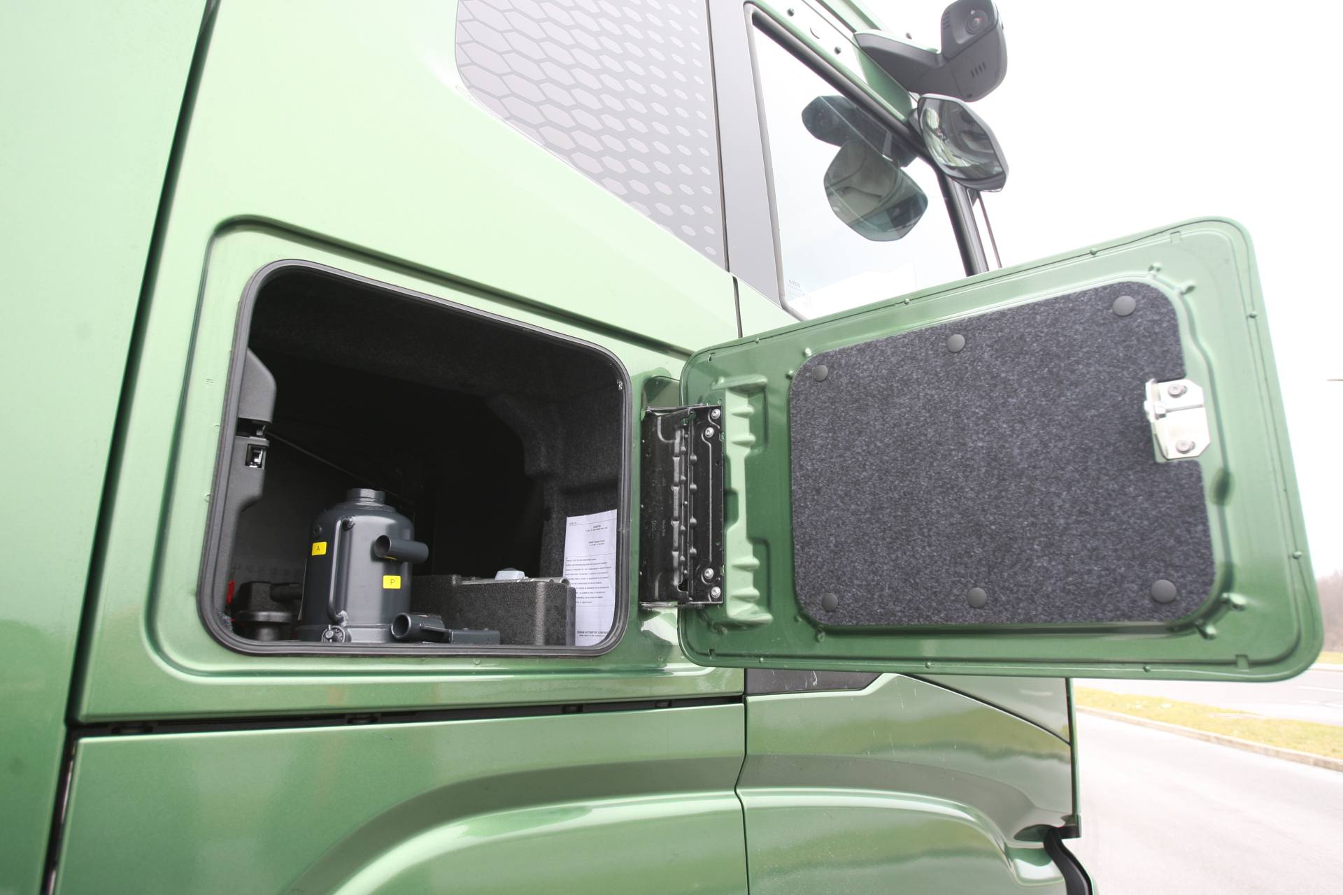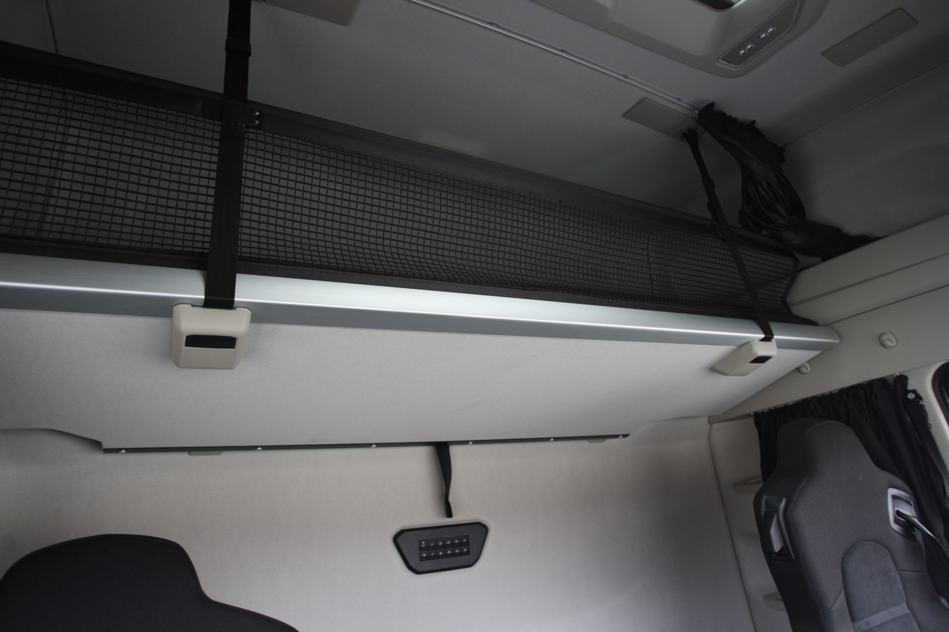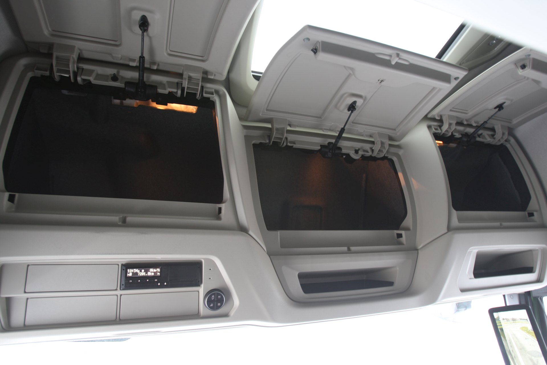 Velika AS kabina od samog početka pruža raskošan unutarnji prostor koji je prvenstveno usmjeren korištenju kamiona na dugim relacijama. Među takvim vrlinama se posebno ističu izdašna unutarnja visina, veliki stropni zatvoreni pretinci i dva 50-litarska hladnjaka ispod kreveta (drugi u opciji). U tom dijelu nije bilo nikakvih promjena jer za tim nije bilo nikakve potrebe. Ovo uključuje upravljačku ploču pored kreveta u sredini stražnjeg zida kabine. Na taj način je jednako pristupačna (ali također jednako udaljena) bez obzira na individualne navike vozača u smislu smjera ležanja. Pored brojnih utičnica za napajanje je pridodan prekidač za uključivanje kamera kako bi se preko unutarnjih monitora tokom noćnog odmora provjerilo stanje u bliskoj okolini kamiona.