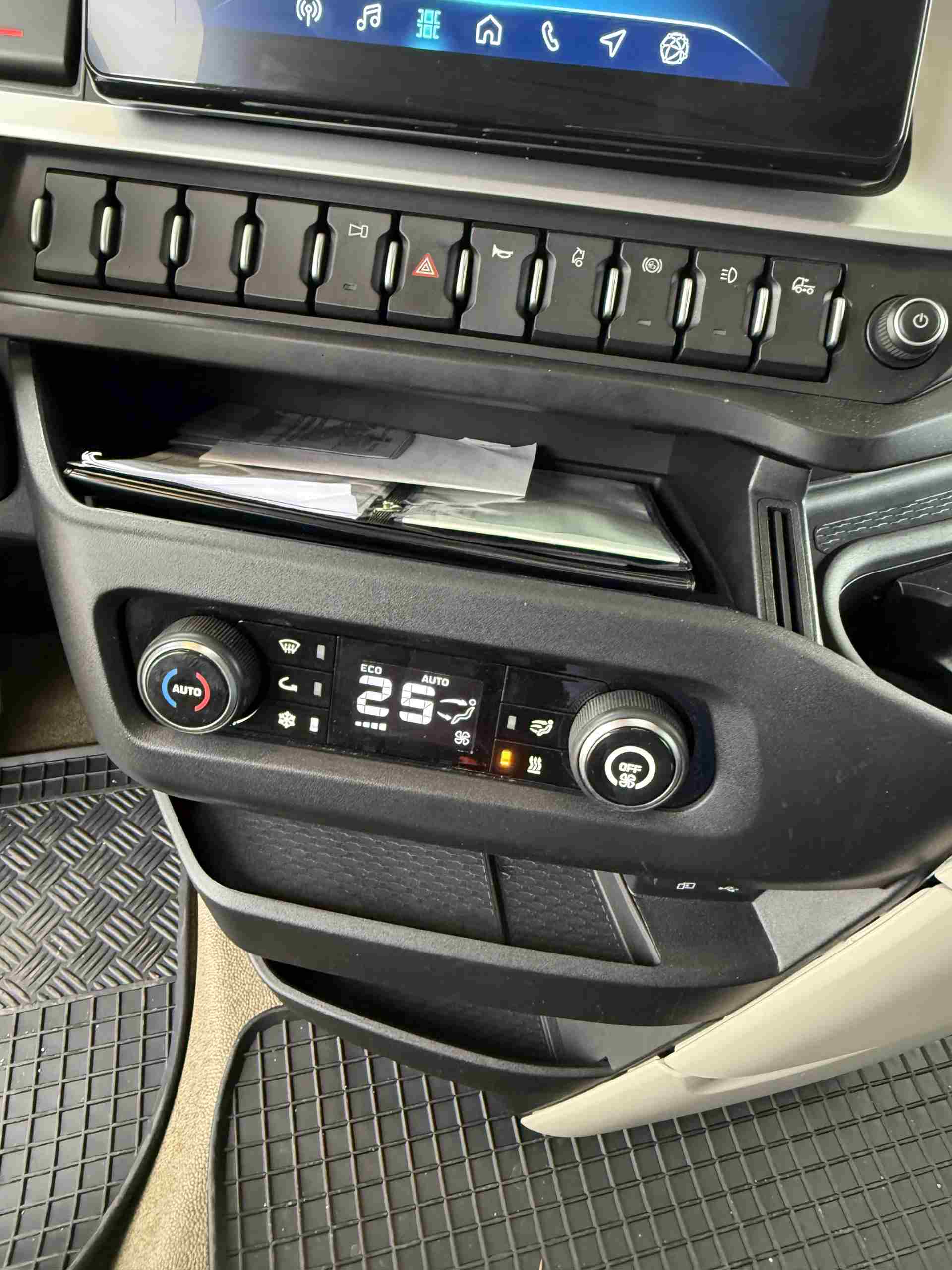 Dodirni desni zaslon je dostupan u veličini 7 ili 10 inča, a namijenjen je upravljanju multimedijom i prikazu sa stražnje kamere prilikom vožnje unatrag. Brojne integrirane funkcije je moguće dopuniti pomoću smartphonea uz uključeni Android Auto i Apple Car Play ( jednostavni telefoniranje, glasovne naredbe, mogućnost korištenja drugačije izvedbe navigacije, glazbenih datoteka…) a bežično povezivanje prihvaća dva uređaja. Osobito je pohvalno što je pored dodirnog zaslona upravljanje značajnijim funkcijama vozila zadržano kroz pregledno postavljene novodizajnirane fizičke prekidače. Ovo vrijedi također za ugađanje automatske klime čije je praktično rješenje s dva okretna prekidača slično dosadašnjoj izvedbi. Pri vrhu table je postavljen električni prekidač parkirne kočnice što podrazumijeva dodatne korisne funkcije uobičajene kod takvog rješenja. Novi oblik table omogućuje veliki broj otvorenih odlagališta uključujući utore za napitke koji su sada na povoljnijoj povišenoj poziciji. U donjem dijelu su dvije velike ladice na izvlačenje, a upravo ovdje započinje svjetliji dio armature koja je kod najveće AS-kabine dvobojna.