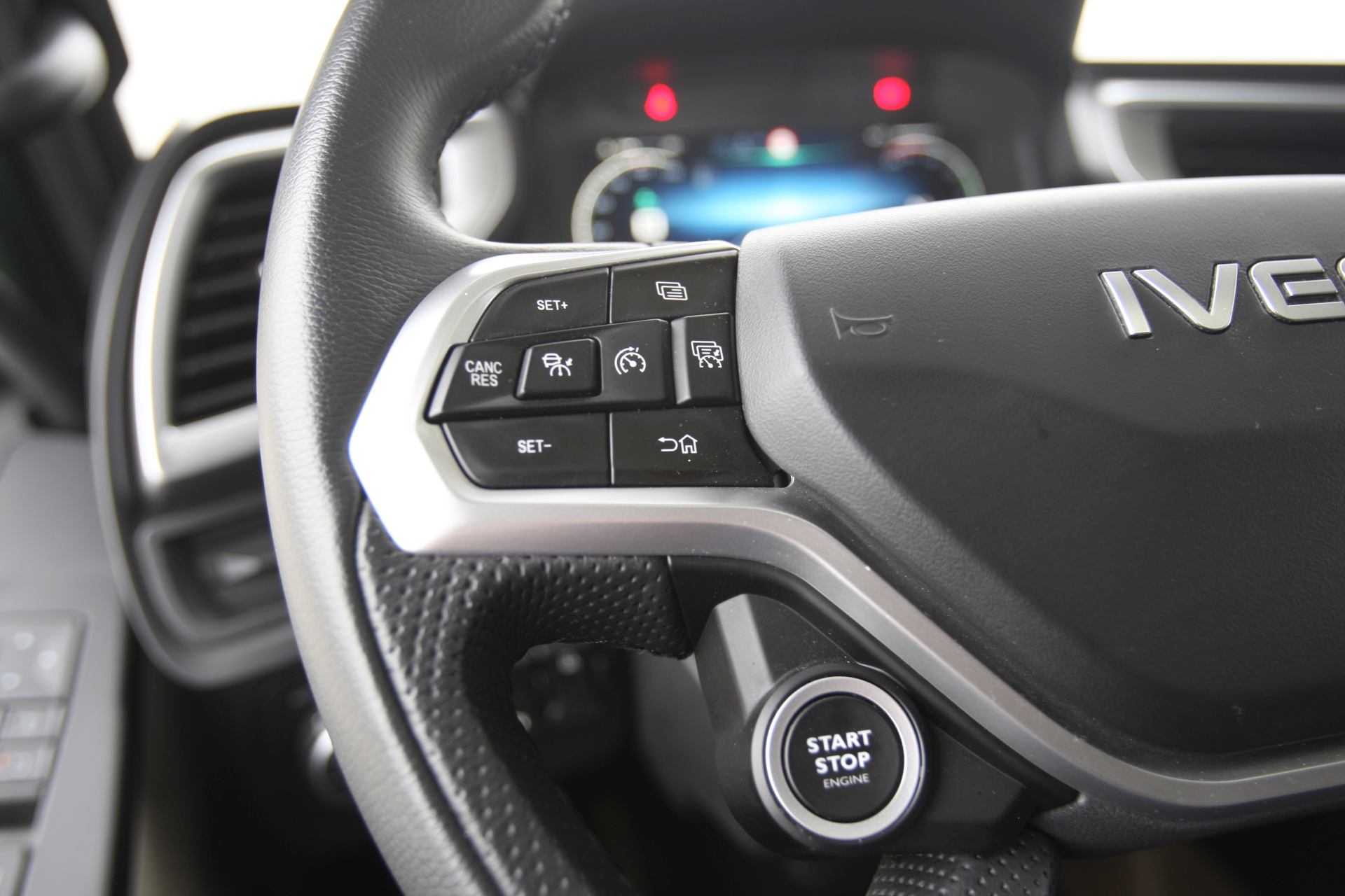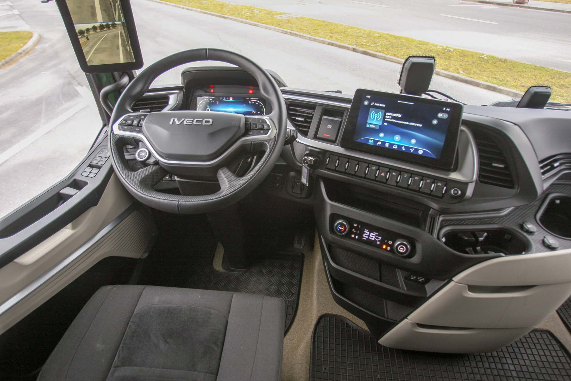 Svakako je najvažnije što se u S-Wayu sada sjedi iza upravljača na potpuno udoban način slično osobnom automobilu. Pritom najviše dolazi do izražaja znatno veći hod upravljača po visini i nagibu, a nožni prekidač za otključavanje ove funkcije je premješten na odmorište za lijevu nogu (slični Mercedesu Actros). Iveco je oduvijek znao ugodno oblikovati njegov obruč pogođene debljine dok je sam multifunkcijski upravljač ponovo redizajniran. Pritom su tipke za upravljanje info-zaslonom i telefonom premještene na desnu stranu te su na taj način zamijenile pozicije s funkcijama adaptivnog tempomata, a na donjem dijelu je pridodan prekidač za pokretanje i zaustavljanje motora. Nedvojbeno originalno rješenje je ipak prilično bizarno jer se ova funkcija ne koristi tokom vožnje, a i nadalje je potrebno postaviti ključ s daljinskim zaključavanjem u odgovarajući otvor na tabli. Sa stražnje strane upravljača su zadržane tipke za upravljanje osnovnim funkcijama glazbenih sadržaja, a na njegovom stupu su se pojavile znatno praktičnije ručice.