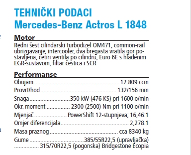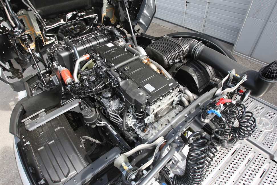 Nema sumnje kako najbolji izbor kod ovakvog dugolinijskog kamiona i nadalje predstavlja 12,8-litarski motor OM 471, a najpopularnije su izvedbe s 450 i 480 KS. Posljednji put je ovaj motor značajnije ažuriran 2022. kada je njihova potrošnja smanjena za četiri posto. Kod takvog postignuća se ističu detalji poput reguliranog rada vodene pumpe ili dvostupanjskog kompresora dok je od sedmog do dvanaestog stupnja automatiziranog mjenjača Power Shift dostupno dodatnih 200 Nm okretnog momenta. Takva značajka prvenstveno utječe na dinamiku vožnje prilikom ubrzanja ili na uzbrdicama jer je dostupna isključivo unutar moda rada mjenjača A Standard što predstavlja dobar izbor u zahtjevnijim prometnim situacijama koje iziskuju veću isporuku snage i okretnog momenta. Kod uobičajenih krstarenja je preporučljiv izbor moda A Economy jednostavnim pritiskom prekidača na desnoj ručici čime se smanjuje potrošnja goriva.