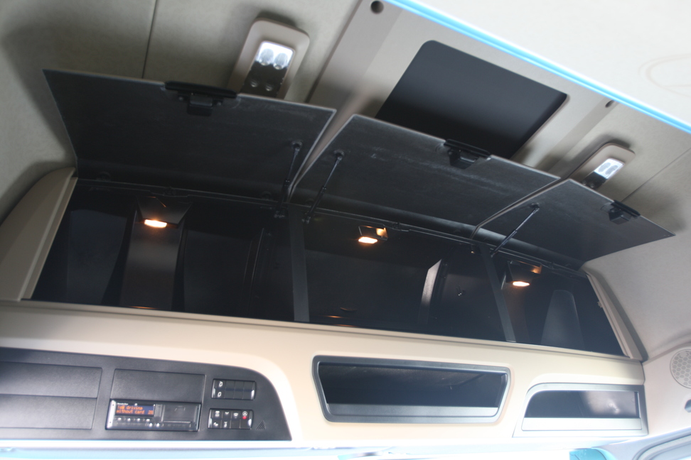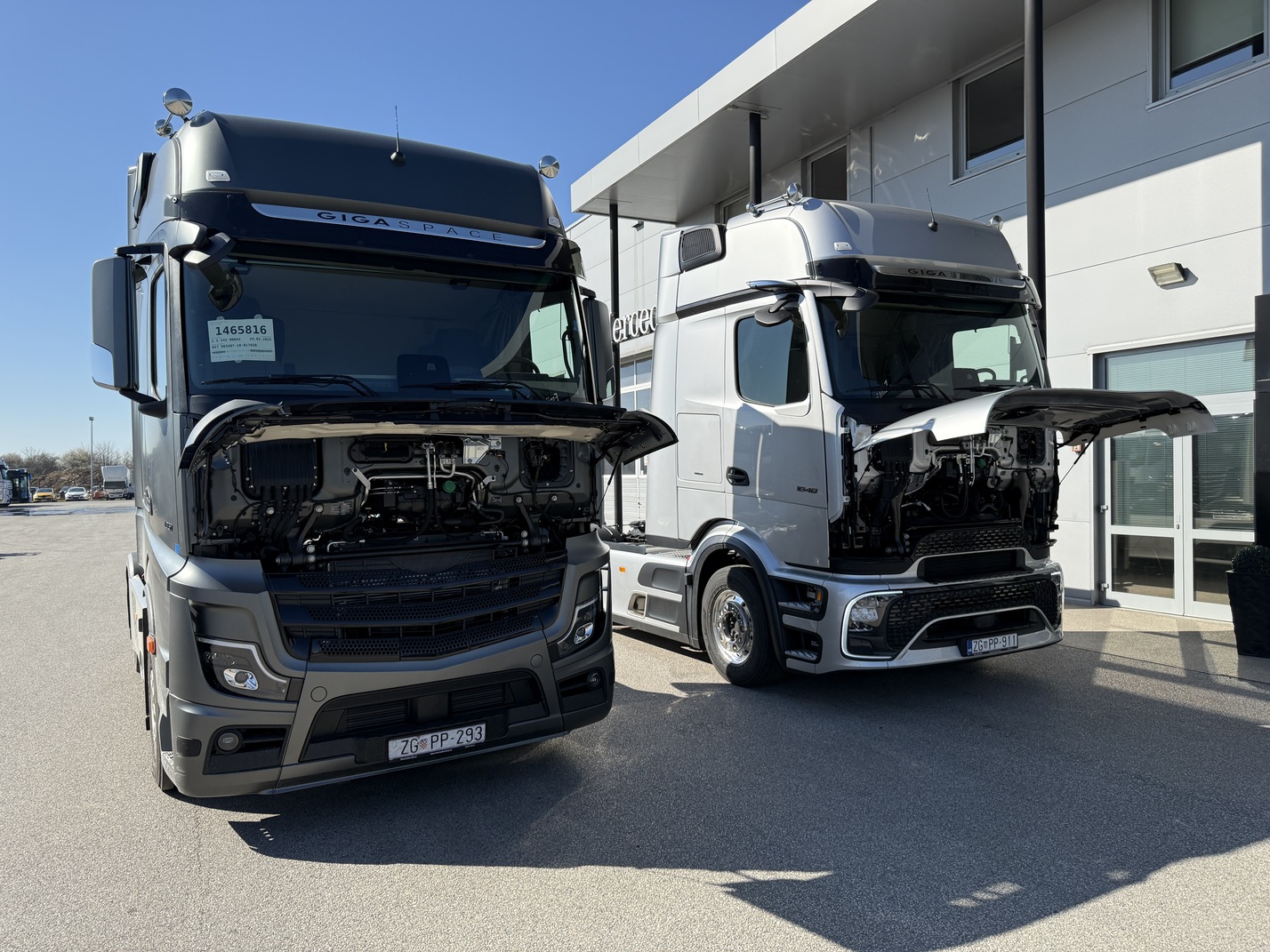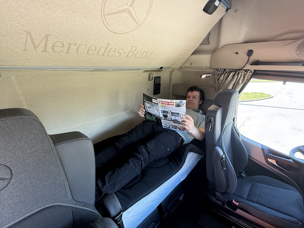 Nova Pro Cab je prvenstveno namijenjena dugolinijskim prijevozima gdje njezine aerodinamičke vrijednosti najviše dolaze do izražaja. Zbog toga je unutar postojeće ponude od sedam kabina dostupna u tri najveće izvedbe širine 2,5 metra s ravnim podom. Ovo uključuje Stream Space, Big Space i Giga Space među kojima razliku čine tri izvedbe povišenog krova što utječe na unutarnju visinu stajanja (197-213 cm) i veličinu stropnih pretinaca. Svaka od ovih kabina omogućuje korektan višednevni boravak za jednog vozača, a za one najzahtjevnije je uz najveću Giga Space raspoloživ paket Solo Star. Uz samo jedan raskošan krevet unutar velikog unutarnjeg volumena takav izbor pruža dodatke poput sklopivog stolića ili okretnog suvozačkog sjedala. U naš testni primjerak koji je među prvima novim Actrosima L pristiglim u Hrvatsku su u najveću Giga Space ugrađena dva kreveta što ga čini podobnim i za dvojne posade. Kod takvog korištenja ga ipak ograničava prilično rustikalno suvozačko sjedalo koje nije osobito prikladno za dugotrajne vožnje, a niti za trenutke odmora.