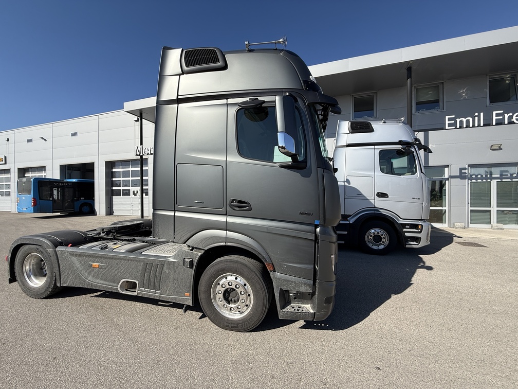 Mercedes je iskoristio najnovije europske regulacije koje u svrhu napretka aerodinamike i sigurnosti dozvoljavaju produljenje kamionskih kompozicija u odnosu na dosadašnje fiksno postavljene vrijednosti pod uvjetom zadržavanja zadanih manevarskih sposobnosti. Na toj osnovi je kabina Actrosa produljena za osam centimetara u predjelu ispred prednje osovine što je isključivo iskorišteno za aerodinamički povoljnije zaobljenje čeone površine. Pored toga se Mercedes odlučio za maksimalno uklanjanje svih suvišnih detalja na prednjem dijelu koji utječu na strujanje zraka tokom vožnje. Na taj način su nestali bočni difuzori dok su otvori za dovod zraka svedeni na minimalnu razinu. Preostala je velika dominantna lakirana površina s trokrakom zvijezdom u sredini koju zapravo gotovo u potpunosti čini jednodijelni podizni poklopac prednje maske čiji su spojevi maksimalno pomaknuti iza kutova kabina. Time je stvoren optički dojam prilične praznine bez sadržaja koji potpuno određuje pojavu ovog kamiona, ali se u svakom slučaju nitko ne može požaliti na nedostatak prostora za postavljanje natpisa.