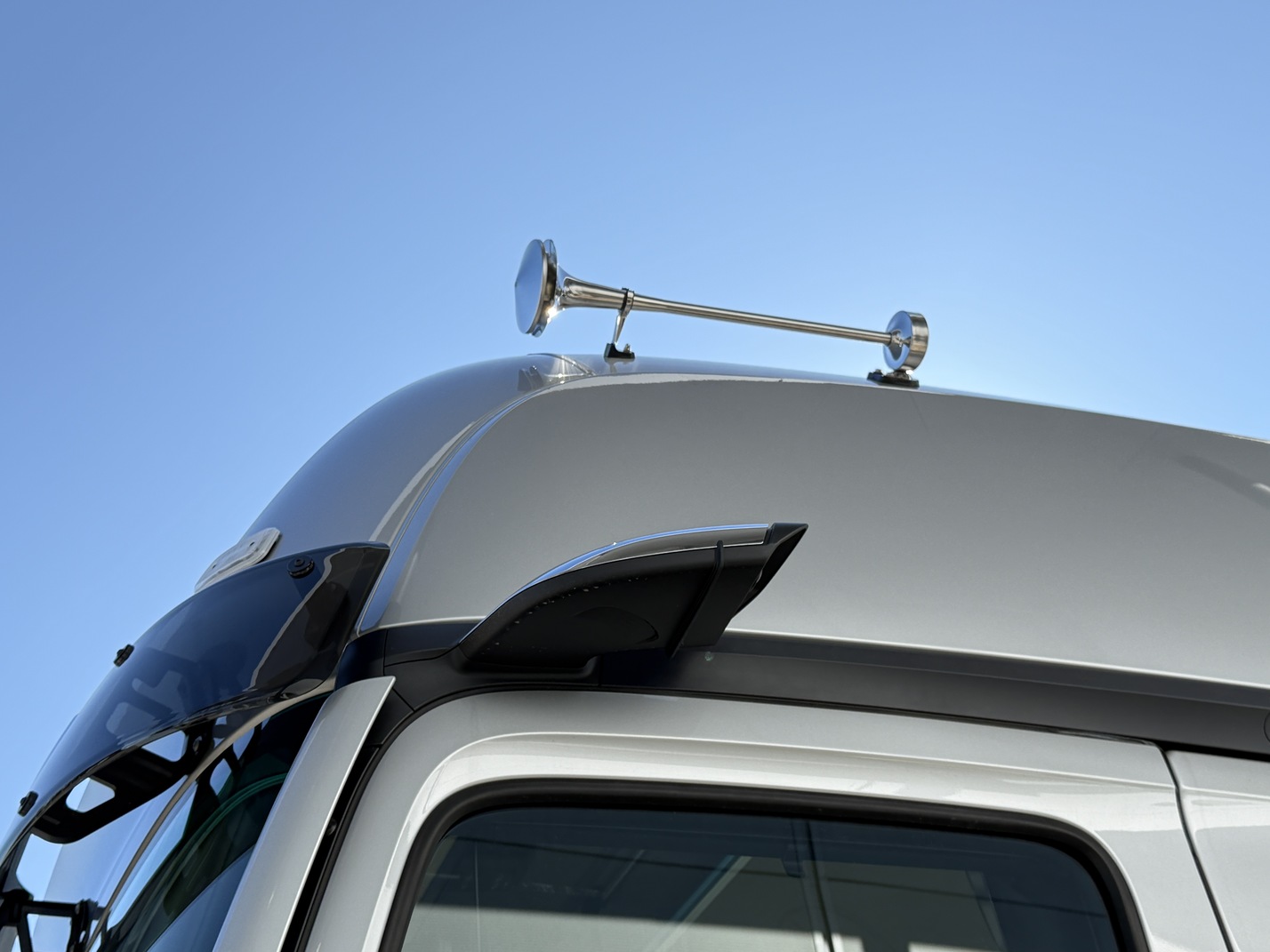 I dok su s kabine brojni detalji uklonjeni u predjelu krovnih A-nosača su pridodani maleni difuzori koji bi trebali umanjiti prljanje bočnih prozora pri lošim vremenskim uvjetima. Ugrađuju se isključivo uz opciju Mirror Cam što se odnosi na kamere umjesto retrovizora. Njihova kućišta su također redizajnirana pa sada više ne strše onako izraženo kao do sada. Uslijed općenite temeljitosti oko napretka aerodinamike začuđuje što Mercedes bezuvjetno zadržava klasične dodatne retrovizore za nadzor prostora oko prednjeg desnog kuta kabine. Pritom ipak veseli što je okomiti retrovizor na desnim vratima maksimalno pomaknut unaprijed što olakšava pogled prema njemu uz manje izraženo okretanje glave vozača. I kod nove Pro Cab je zadržana mogućnost izbora klasičnih glavnih retrovizora, ali se u tom slučaju desni bočni retrovizor nalazi na ranije uobičajenoj poziciji, a tada također izostaju dodatni difuzori na A-nosačima.