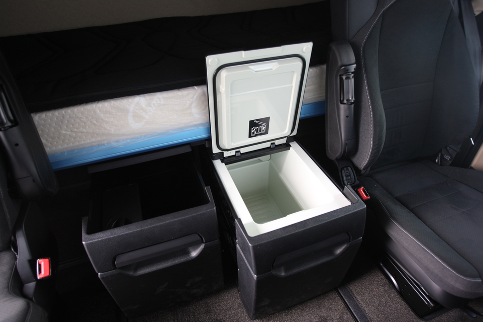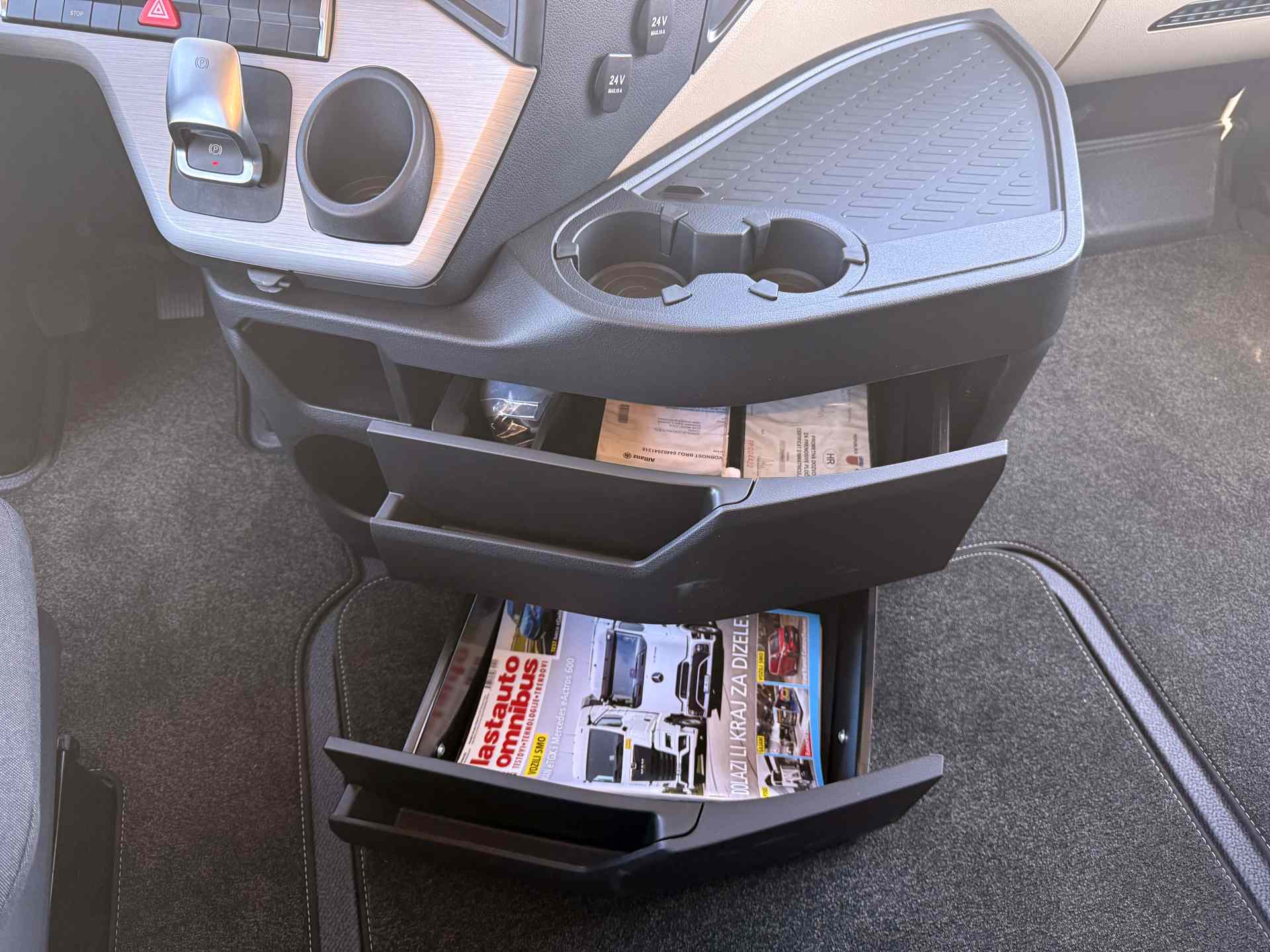 Takvim detaljima Actros ne može sakriti godine jer je postojeća kabina u osnovi nastala još 2011. Mercedes održava njezinu aktualnost mjerama poput ovog radikalnog vanjskog redizajna ili podjednako kontroverznog digitalnog kokpita kakav poznajemo već pet godina. I u novoj Pro Cab će se dosadašnji vozači Actrosa osjećati kao kod kuće, ali će također primijetiti sitne promjene bez kojih ne može proteći ovakva modernizacija. Kod sjedala i zavjesa se sada koristi kvalitetnija deblja tkanina, redizajnirana je komandna ploča pored kreveta, a pridodano je još nekoliko utičnica (usb-c i 230 V) i novih mogućnosti unutarnjeg LED-osvjetljenja. Na listu dodatne opreme je sada uključena mogućnost ugradnje dodatnog drugog hladnjaka i kvalitetnijih madraca uz poboljšanu letvičastu konstrukciju donjeg kreveta.