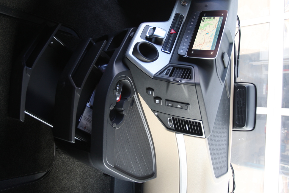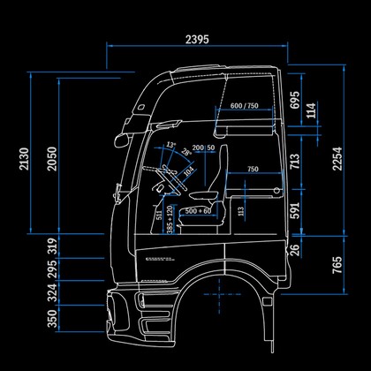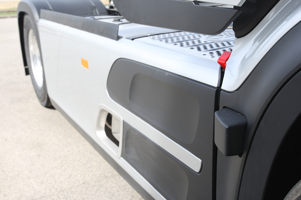 Podjednako je neočekivano kako su donje dvije stepenice ostale otvorene (kod aktualnog Actrosa samo jedna) što teoretski ne bi trebalo biti u skladu s općenitim poboljšanjem aerodinamike. Ipak se čini kako su uslijed produljenja prednjeg dijela postale nešto šire dok su gornje dvije stepenice prekrivene vratima pomalo stisnute u specifičnim plitkim udubljenjima. Nešto drugačiji vertikalni raspored stepenica je i nadalje prilično okomit pa se ulazak u kabinu nije značajno promijenio. Uglavnom jednako vrijedi za poznatu unutrašnjost čiji prostor nije primjetno profitirao produljenjem kabine jer je ova mjera isključivo iskorištena za napredak aerodinamike. Još uvijek se iza upravljača osjeća određena ograničenost uzdužnog prostora što uvjetuje relativno uspravan položaj vozača tokom vožnje.
