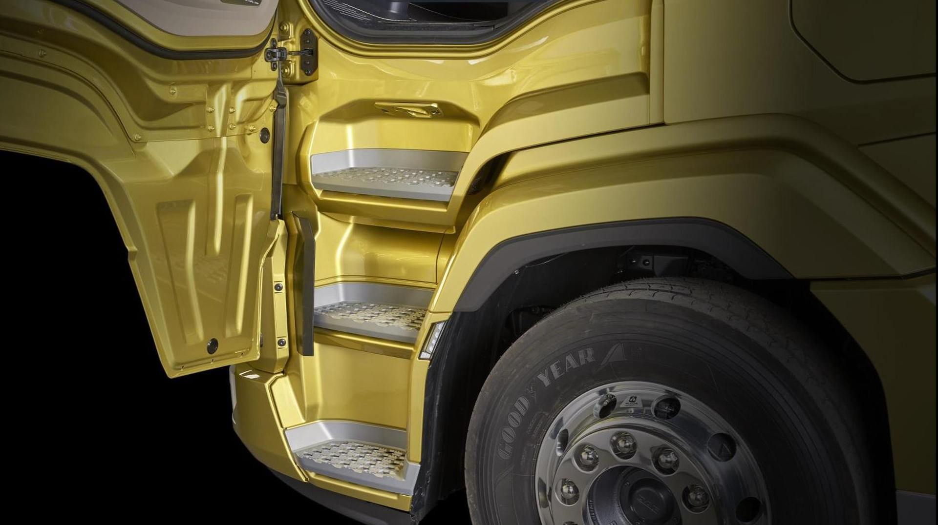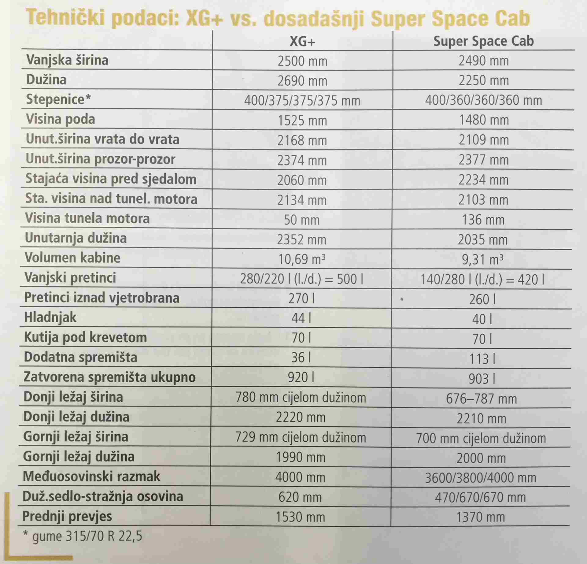 Time se posljedično DAF poprilično izdvaja od svojih konkurenata koji, barem što se tiče novih dužina, još uvijek nisu kročili u tu fazu razvoja. Novi admiralski brod DAF-a – XG+ – sada nudi impresivan unutarnji volumen kabine od 10,7 m3 što je zasigurno sasvim zasebna kategorija budući da je cijelu stepenicu iznad dosadašnje kabine Super Space Cab u kojoj prostora nikada nije manjkalo. Podsjetimo, tamo je na raspolaganju bilo čak 9,3 m3 što se sada čini neopisivo malo. Pri tom su DAF-ovci ultimativni praktičari kako im i priliči budući da su itekako pazili kako i visina ulaza ne bi otišla u epske visine. Nakon otvaranja vrata uz pomoć koso položene kvake koja svojom solidnošću ulijeva prvi pozitivni dojam, otvara se pogled na stepenište koje se sada u razmacima od 375 mm umjesto do nedavnih 360 mm.