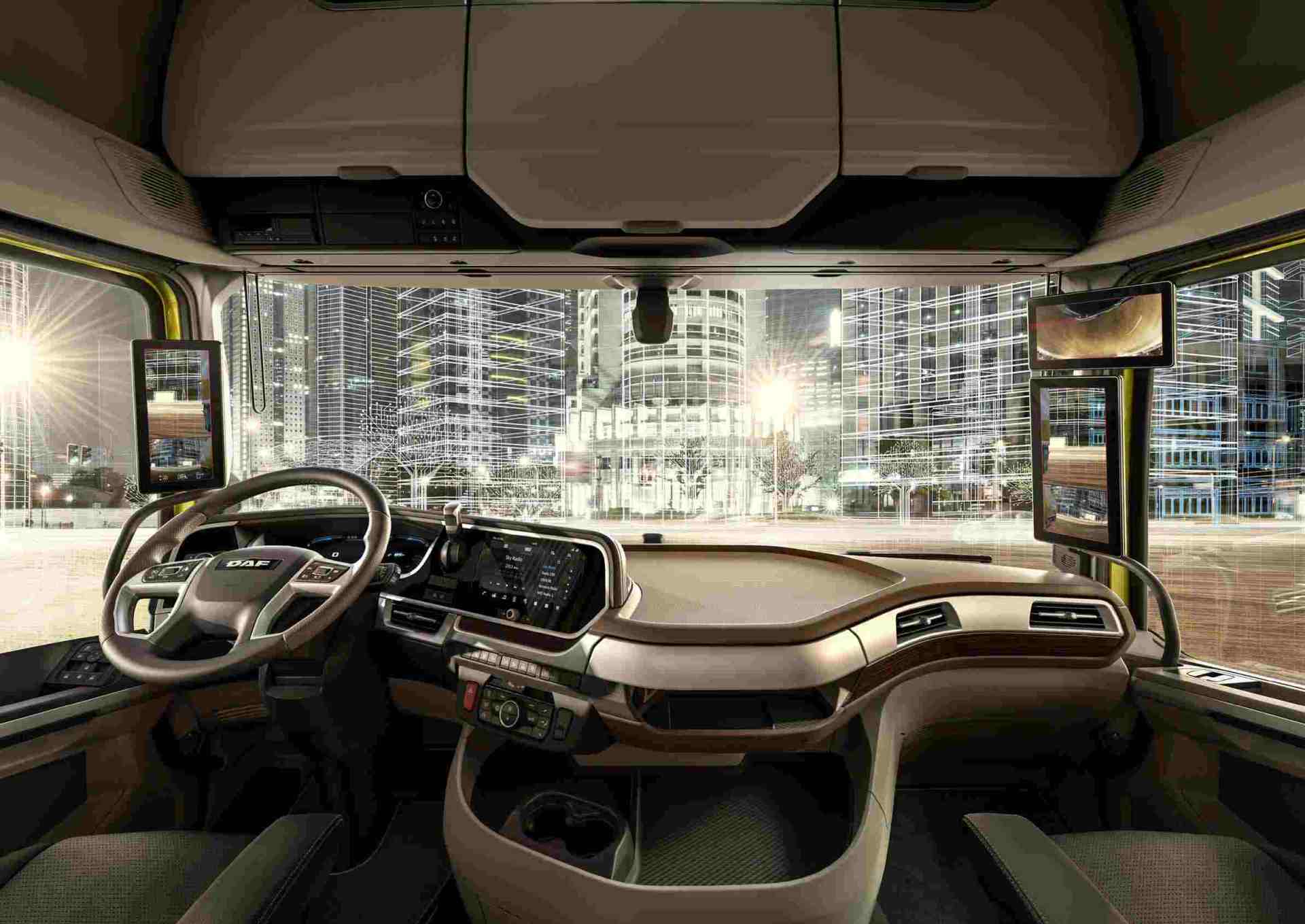 Nove mjere omogućuje da su u DAF i dalje penje uz pomoć tri stepenice uz umjeren napor prilikom ulaska u novu raskošnu kabinu. S visinom podnice od dobrih metar i pol, ulaz u kabinu novog XG+ je otprilike za pola dlana više nego u dobru staru Super Space Cab. Ono što nas oduševljava međutim jest činjenica da je visina tunela motora s nekih 140 mm sada spala na samo njih 50 mm. Zbog svega toga ulazak u kabinu XG+ ostavlja prije dojam kao da ulazite u kakav raskošan stan visokih stropova nego u klasičan kamion s visokom kabinom. Tri stvari odmah po ulasku ostavljaju značajan dojam na onoga tko se prvi put susreće s novim DAF-om. Veliki prozori preplavljuju ovaj apartman na kotačima svjetlošću ali i donose dodatnu korist u vidu bolje preglednosti prema vani zahvaljujući njihovim niskim rubovima.
