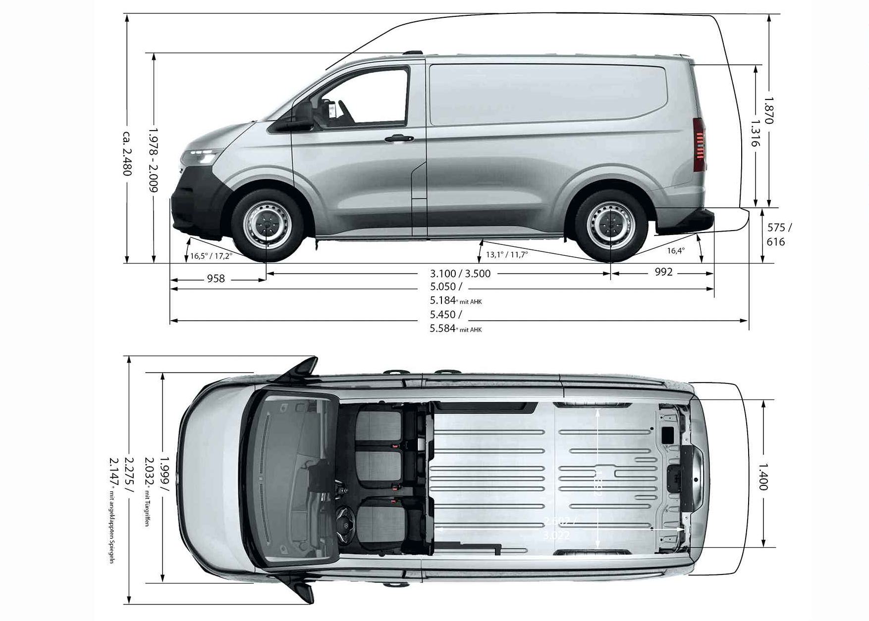 Što se karoserijskih varijanti tiče, Volkswagen obećava 13 različitih izvedbi plus unikatnu Doka inačicu s dvostrukom kabinom. Prema navodima VW-a, varijanta s jednostrukom kabinom nije bila zanimljiva kupcima zbog čega niti nije u ponudi. O dimenzijama smo već pričali u prošlim brojevima pa podsjetimo da se nova generacija VW Transportera u odnosu na T6.1 rastegnula za 14,6 cm na 5.05 metara u standardnoj odnosno 5,45 metara u produženoj varijanti. Posljedično, moguć je utovar predmeta do 2,60 metara (+60 mm) uz napomenu da, sada plastična pregrada, u gornjem dijelu ipak nešto više zadire u prostor. Produžena varijanta nudi tri metra dužine na podu odnosno dodatnih 40 cm uz otvor u donjem dijelu pregrade. Činjenica da je novi Transporter 12,8 cm širi nego prije najviše se očitava na 139 cm između lukova kotača zbog čega više nema straha kod poprečnog utovara europaleta. Za pet posto je povećan i ukupni volumen kod furgona koji se kreće od 5,8 m3 kod standardne izvedbe s niskom krovom pa sve do 9,0 m3 kod produžene s visokim.