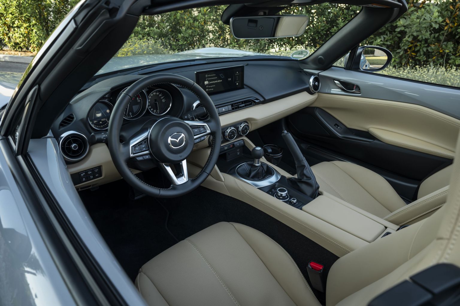 Što je novo? Sprijeda sada nalazimo full LED-svjetla, dok ona straga dolaze u nešto drukčijoj grafici. Kupci koji se odluče za paket opreme Kazari dobit će platneni krov u posebnoj bež nijansi, a u unutrašnjosti možemo primijetiti nešto više dotjerivanja, prije svega novog i većeg ekrana multimedije (8,8 inča) preuzetog iz modela CX-30. Isti omogućuje bežično korištenje Android Auta i Apple CarPlaya i samo u opciji mobitela ‘screen mirroring’ postaje dodirni zaslon, a novost su i dva USB-C ulaza.