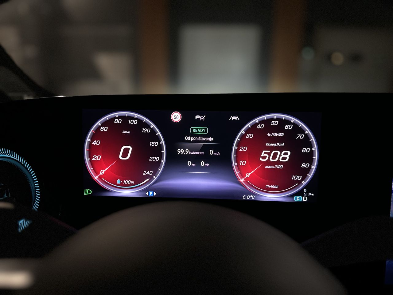 Gotovo svi manevri kočenja rekuperiraju se električno. Energija se čak rekuperira i u području regulacije ABS-a ili na skliskim površinama, a hidraulične kočnice se aktiviraju tek neposredno prije potpunog zaustavljanja ili tijekom vrlo naglog kočenja. Jedva da ćete to primijetiti na samoj papučici kočnice. Osjećaj je tijekom usporavanja transparentan i konzistentan, što baš nije bila jača strana Mercedesovih električnih automobila.