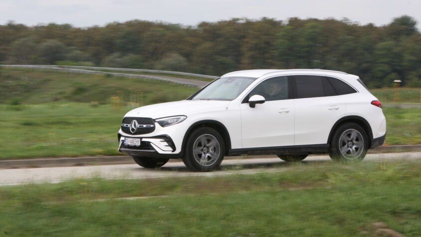 Iznimno učinkovit četverocilindarski motor uparen je s devetstupanjskim automatskim mjenjačem koji brzo i ugodno mijenja stupnjeve prijenosa, te s pogonom na sve kotače 4Matic. Serijski 19-inčni alu-kotači možda nisu najbolje estetsko rješenje za GLC, no s druge strane značajno utječu na povećanje komfora ublažavanja. Isto tako, testni GLC je na pravcu i u zavojima pokazao stoičku stabilnost, što itekako podiže užitak u vožnji. Takve pozitivne vozne karakteristike nadopunjuje precizno i dobro odmjereno upravljanje. Da, vozač sigurno neće pronaći manu pomalo usporenoj agilnosti Mercedesova SUV-a, posebno pri brzim promjenama smjera, jer one u pravilu ne utječu negativno na percepciju vožnje.