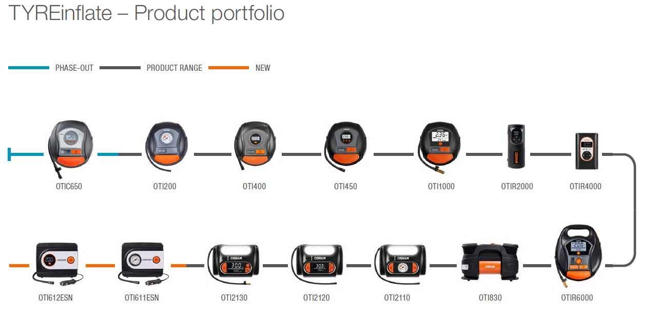 Osiguravanje ispravnog tlaka u gumama važan je dio redovitog održavanja guma. Vožnja s niskim tlakom u gumama uzrokuje smanjenu kontrolu vozila, 10 posto kraći vijek trajanja guma i povećane troškove goriva. OSRAM-ovi inovativni prijenosni kompresori za gume Essentials omogućuju jednostavno i precizno napuhavanje guma kod kuće.