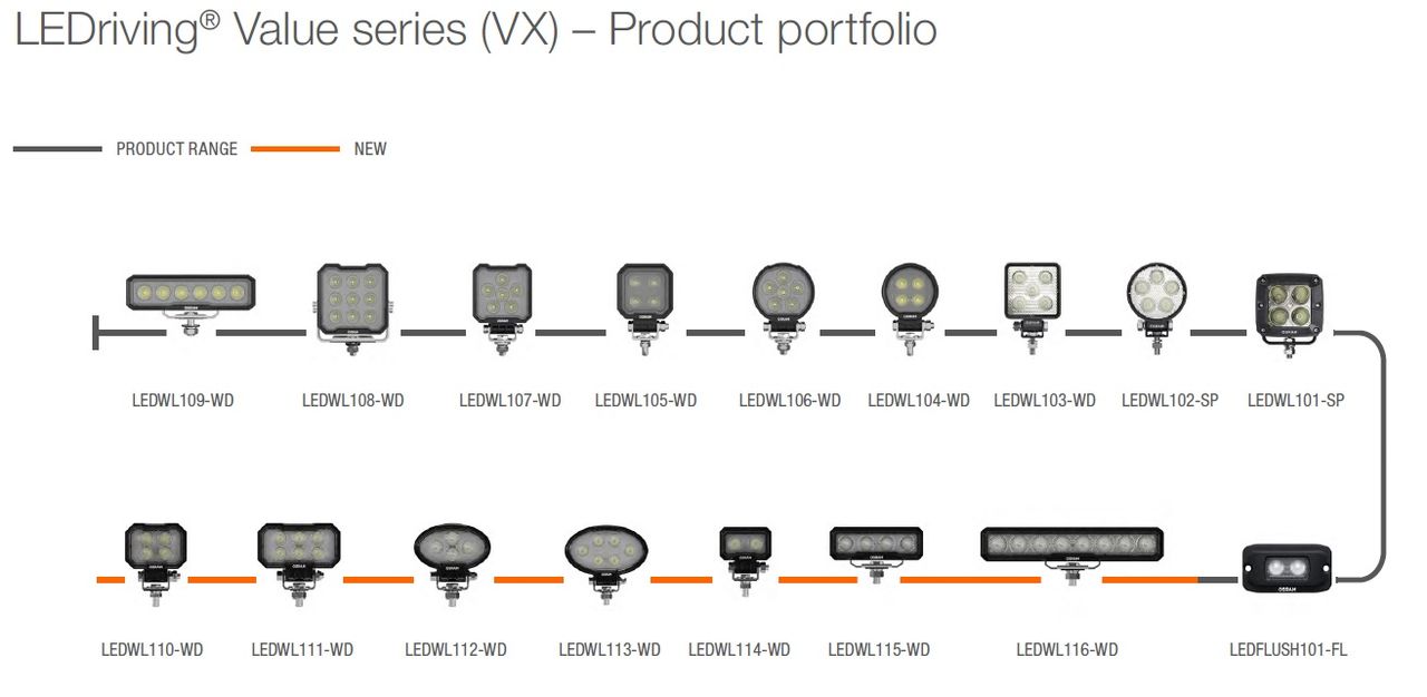 S OSRAM LEDriving Value Series VX portfeljem radnih svjetala postižete impresivno osvjetljenje na tamnim poljskim i šumskim stazama, izvan ceste i izvan utabanih puteva. Radna svjetla kombiniraju pristupačnost sa iznimnim performansama, kvalitetom i funkcionalnošću, pružajući korisnicima impresivnu vidljivost na radnim mjestima izvan cesta i u off road područjima.