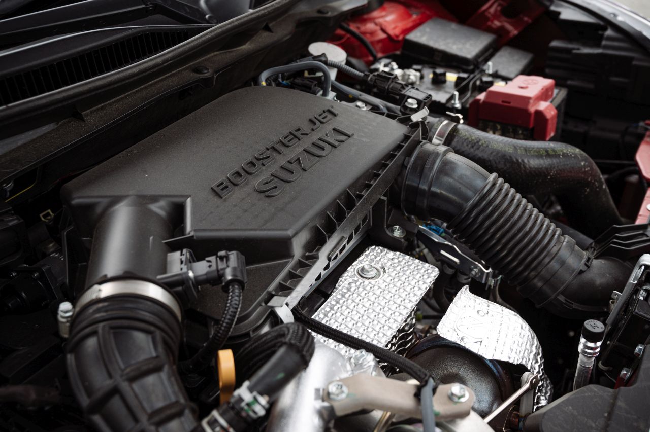 Srce Suzukijeva hibridnog sustava je 1,4-litreni Boosterjet turbobenzinski četverocilindraš iz Vitare, a u Swiftu Sport, umjesto 140, razvija 129 KS uz 235 Nm okretnog momenta, dostupnog od samo 2000 o/min, te ih prenosi na prednje kotače putem dobro proračunatog šeststupanjskog ručnog mjenjača. Unatoč naizgled skromnoj snazi, Swift pokretan ovim motorom iznenađujuće je brz, nudeći impresivna međuubrzanja u rasponu od 2000 do 5000 o/min. Četverocilindraš je i vrlo uglađen i (pre)tih te čak i uz brži tempo može trošiti manje od sedam litara na 100 km.